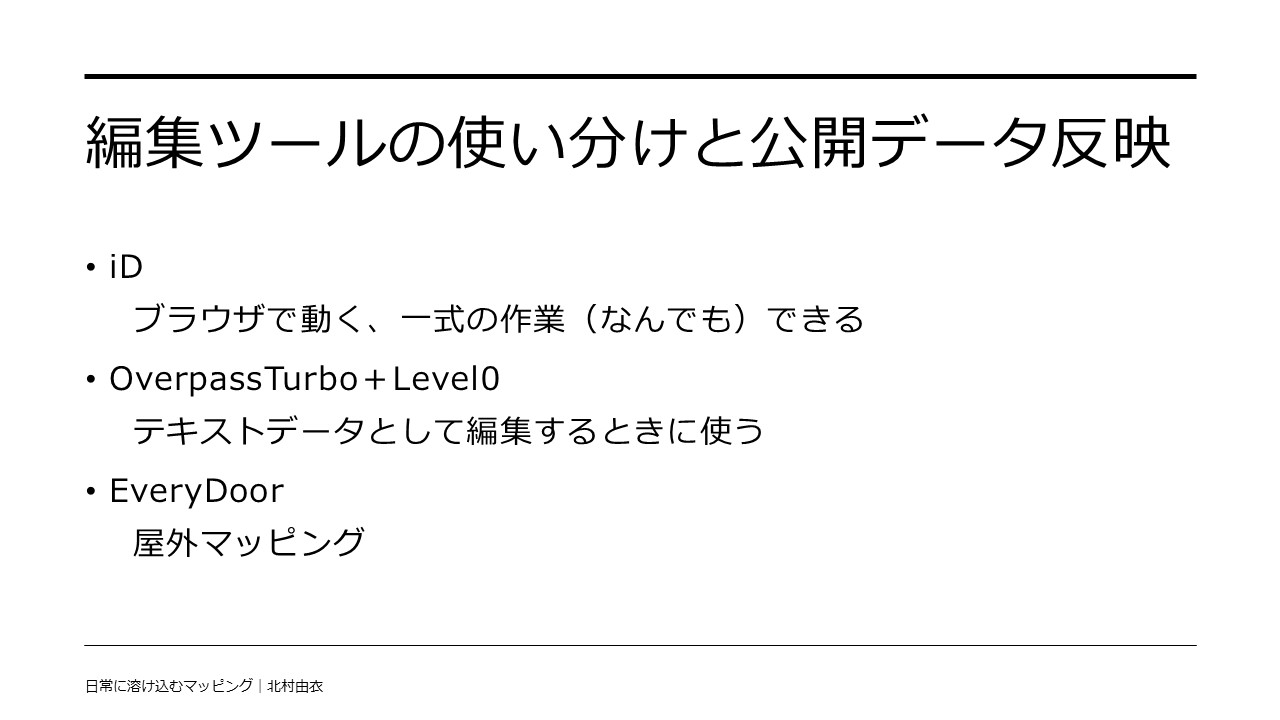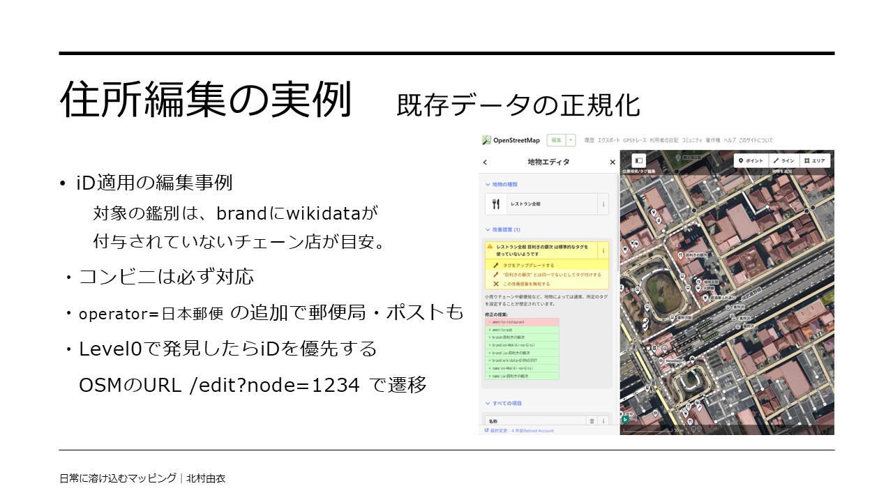- 後から見返して情報を補うのに使う。EveryDoorでも、publish to OSM のオプションを有効にすることで有効活用可能